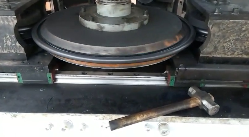 d.彎邊成型:該系統(tǒng)在彎邊輪的下面,增加了一個(gè)支撐輪,支撐輪對(duì)工件進(jìn)行有效支撐,防止圓邊變形。